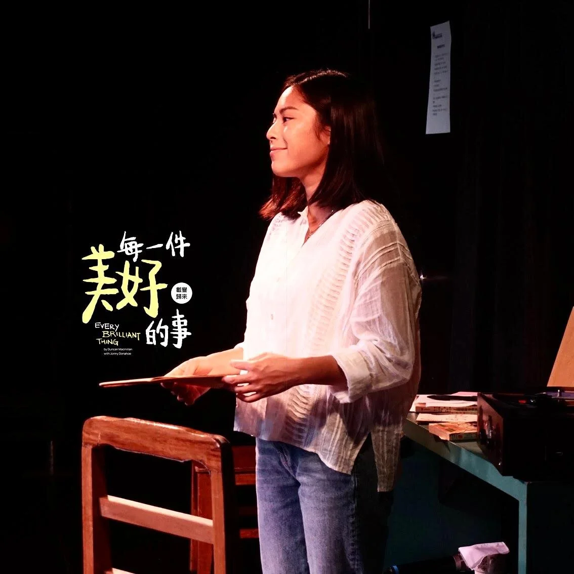 I am an actress, currently freelancing. Recently, I did a solo theatre play called Every Brilliant Thing in Cantonese, originally written by a British playwright - we translated it to Cantonese for the HK audience. The play is about the spectrum of emotions experienced when dealing directly or indirectly with the reality of depression and suicide, providing a refreshing way to destigmatize mental health.